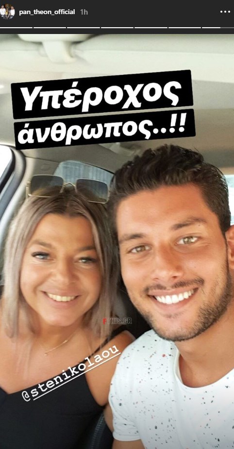 Οι δυο τους πόζαραν χαμογελαστοί και ο Παναγιώτης Θεόφιλος ανέβασε το κοινό τους στιγμιότυπο στα instastories, σχολιάζοντας αναφερόμενος στη μητέρα του Πάνου Ζάρλα: «Υπέροχος άνθρωπος».