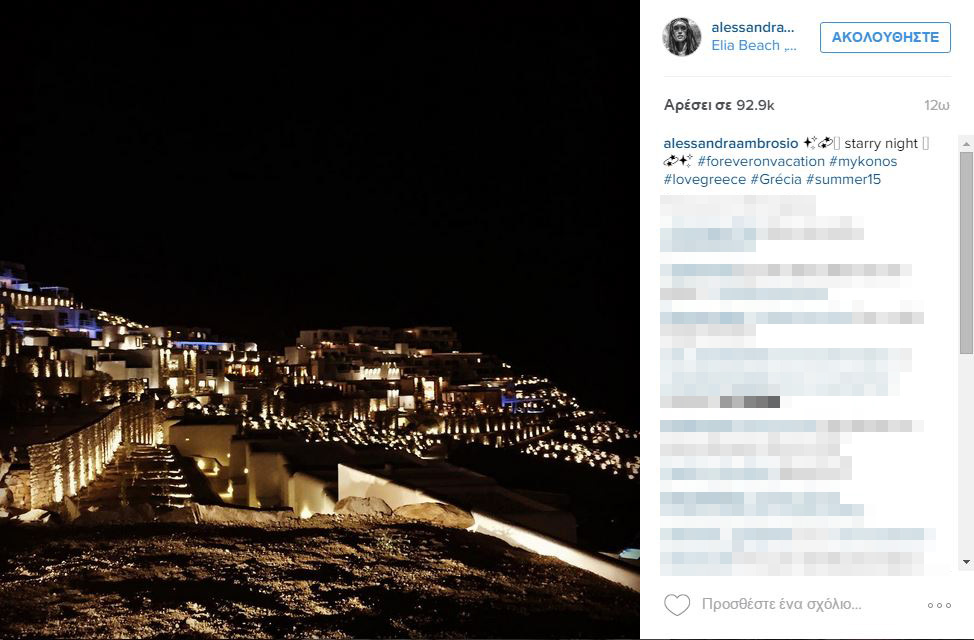Αν και λίγα 24ωρα πριν ο φακός την απαθανάτιζε να απολαμβάνει τη θάλασσα του Ρίο, η Αλεσάντρα Αμπρόζιο φαίνεται πως επιθύμησε το ελληνικό καλοκαίρι κι επέστρεψε στη Μύκονο.