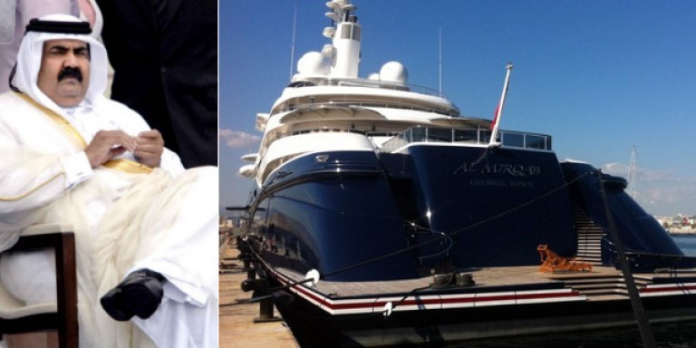 Το «Al Mirqab» είναι το 5ο μεγαλύτερο γιοτ στον κόσμο. Η υπερπολυτελής θαλαμηγός έχει μήκος 133 μέτρα, αξία 300 εκατ. ευρώ και έκανε το παρθενικό της ταξίδι το 2008, όταν ο εμίρης αισθάνθηκε πως ήταν μικρό το μήκους 90 μ. «Oceanco» το οποίο είχε έως τότε.