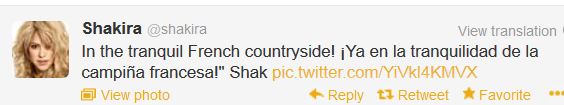 Η Κολομβιανή σταρ, έφτασε χθες σε αγροτική περιοχή της Γαλλίας και το απολαμβάνει δεόντως. Μάλιστα, πόσταρε και στο Twitter σχετική φωτογραφία έχοντας στην αγκαλιά της τον 7 μηνών Μίλαν.