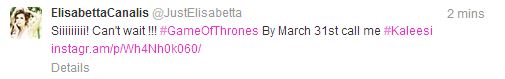 Η Ελιζαμπέτα Κανάλις – ναι, η πρώην σύντροφος του Τζωρτζ Κλούνεϊ – ανυπομονεί να έρθει η 31η Μαρτίου. Ο λόγος; Η πρεμιέρα του τρίτου κύκλου της σειράς “Game of Thrones”. Η Κανάλις είναι μια από τους εκατομμύρια θαυμαστές της σειράς.