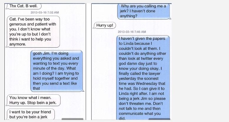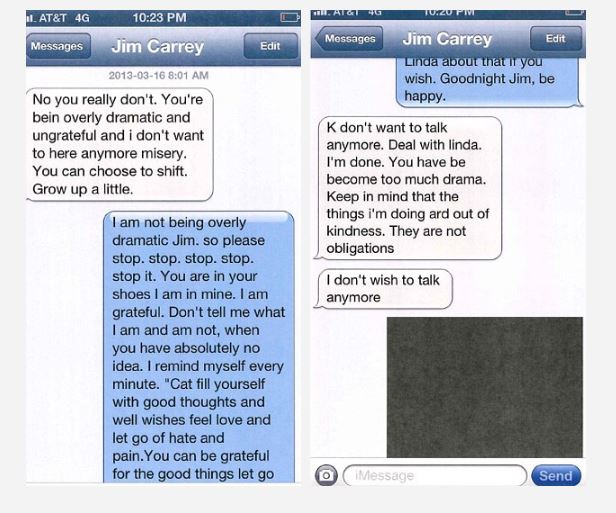 Μάλιστα, στο τέλος, δείχνοντας κουρασμένος με τα πολλά μηνύματα την αποκαλεί ανόητη και καταλήγει λέγοντας: «Είσαι υπερβολικά δραματική και δεν θέλω να ακούσω άλλη μιζέρια. Προσπάθησε να μεγαλώσεις!»