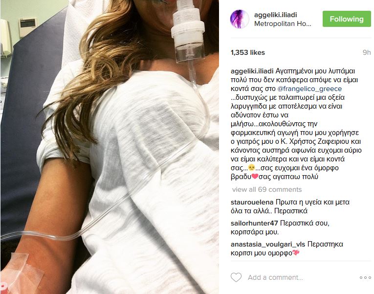 Στο νοσοκομείο βρίσκεται η Αγγελική Ηλιάδη, η οποία ταλαιπωρείται από οξεία λαρυγγίτιδα.