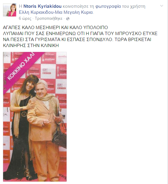Διαβάστε τι έγραψε στο Facebook, η κόρη της Έλλης Κυριακίδου.