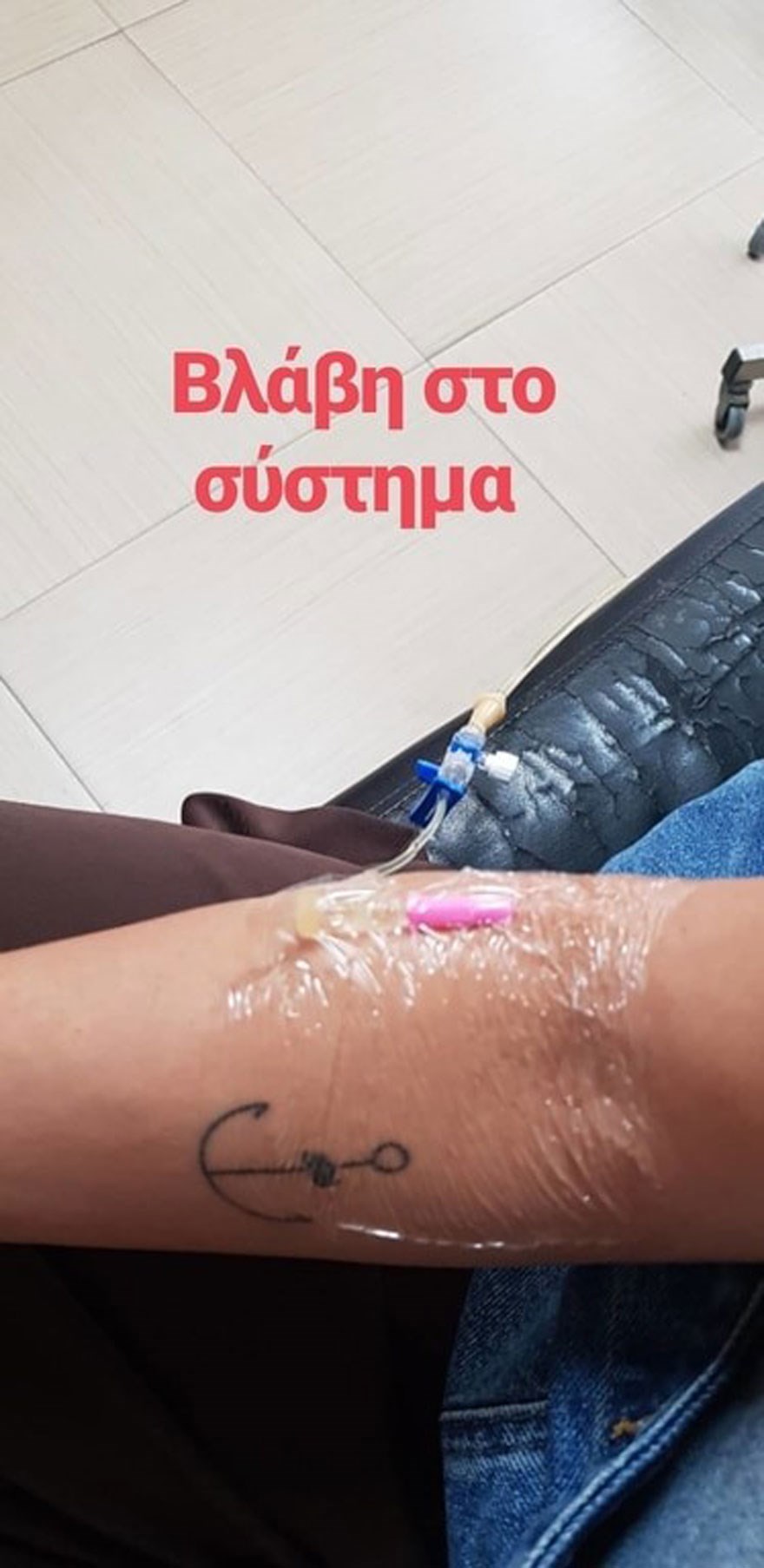 Συγκεκριμένα, η ηθοποιός φωτογράφισε το χέρι της, στο οποίο είχε ορό, γράφοντας: “Βλάβη στο σύστημα”.