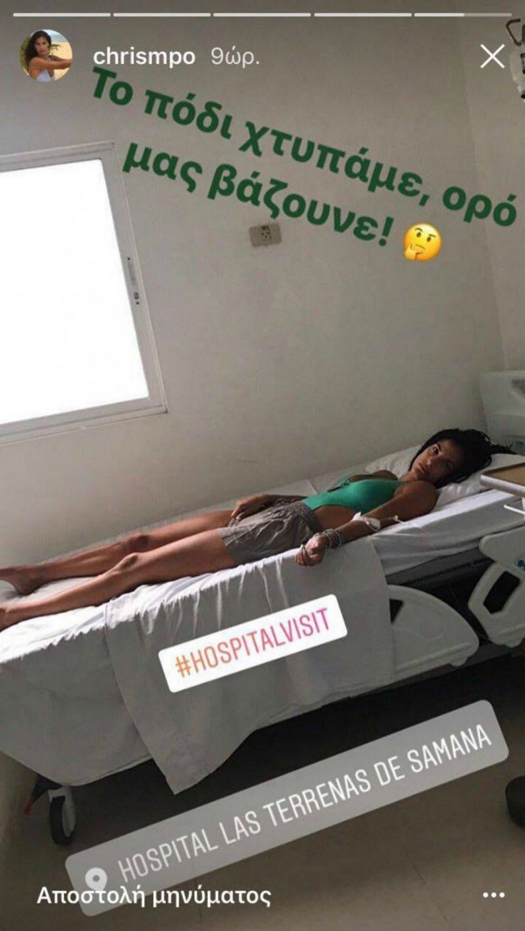 Μέσω του Instagram Story, ενημέρωσε τους διαδικτυακούς της φίλους ότι χτύπησε στο πόδι της και ότι της χορηγήθηκε ορός.