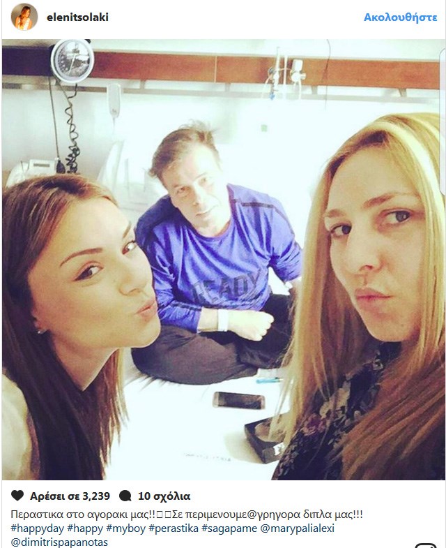 Στο νοσοκομείο βρίσκεται ο γνωστός παρουσιαστής, Δημήτρης Παπανώτας. Την αποκάλυψη έκανε η Ελένη Τσολάκη με την τελευταία της ανάρτηση στα social media. Η παρουσιάστρια του Alpha, ανάρτησε στον προσωπικό της λογαριασμό στο Instagram, μια φωτογραφία της με τον Δημήτρη Παπανώτα, ο οποίος βρίσκεται στο νοσοκομείο.Ο παρουσιαστής νοσηλεύεται, ωστόσο το πρόβλημα που αντιμετωπίζει δεν έγινε γνωστό. «Περαστικά στο αγοράκι μας! Σε περιμένουμε γρήγορα δίπλα μας», έγραψε χαρακτηριστικά.Δείτε την φωτογραφία: