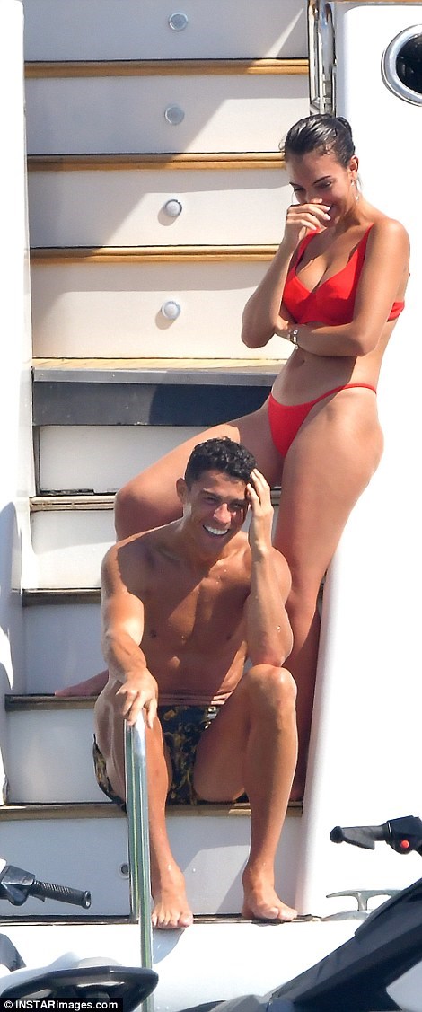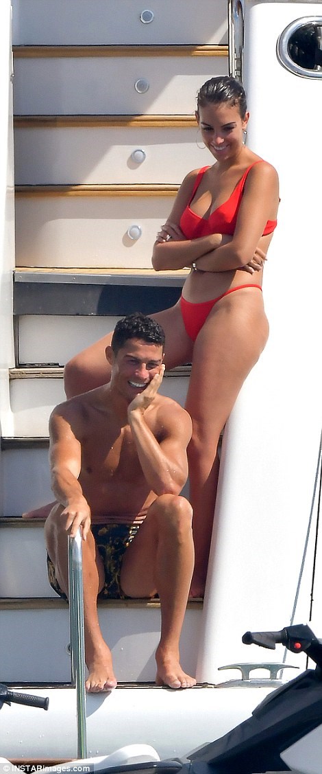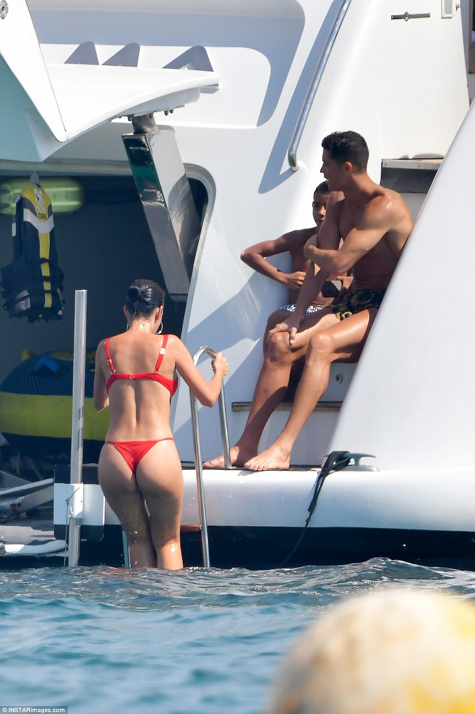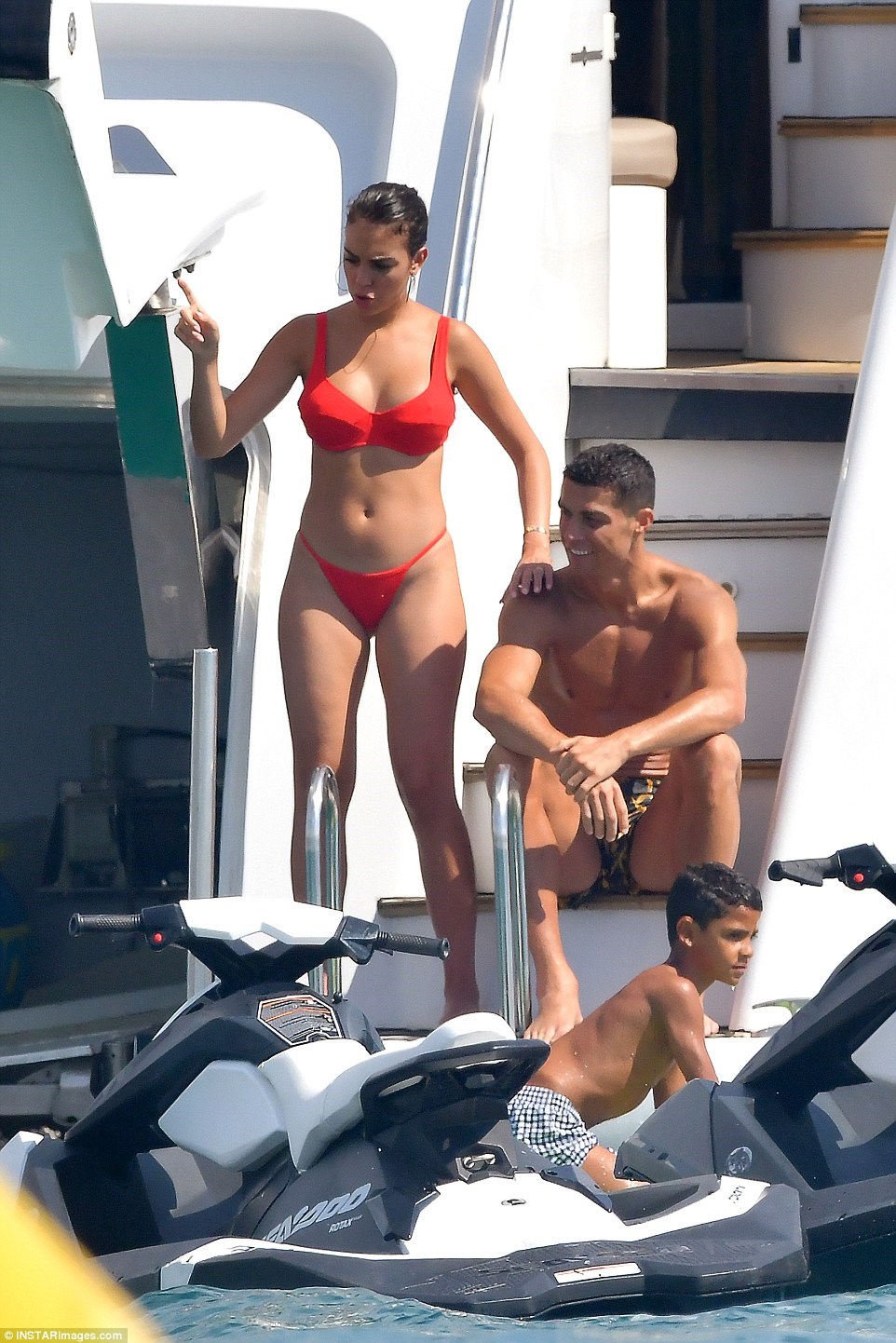 Φυσικά, πέρα από το γυμνασμένο σώμα του άσου της Γιουβέντους, τις εντυπώσεις έκλεψε η 24χρονη Τζορτζίνα με το κόκκινο μπικίνι της που αναδείκνυε τις θηλυκές καμπύλες της.