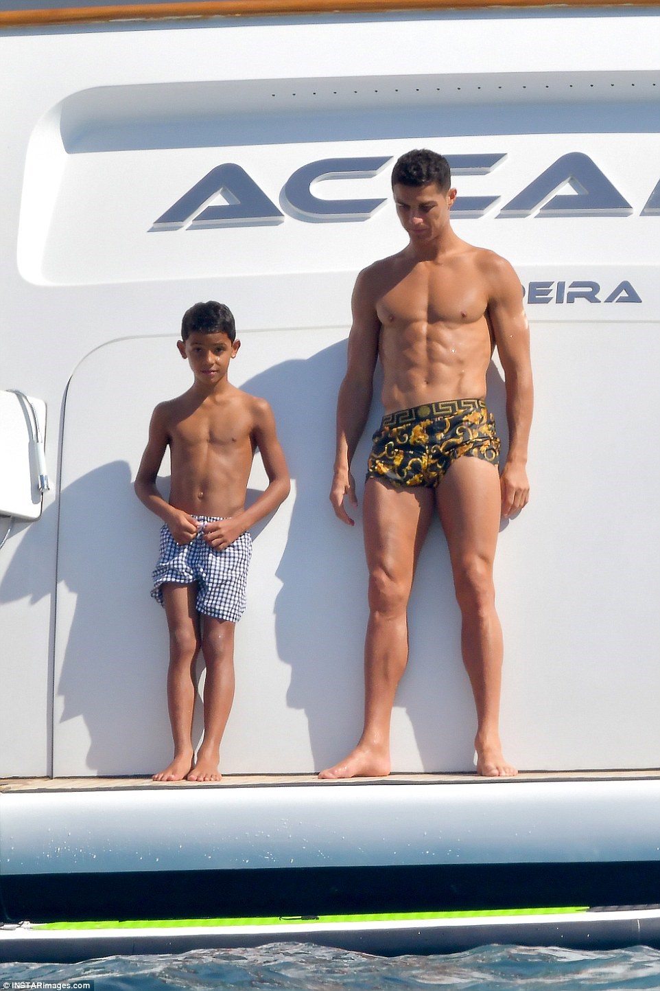 Τους καλογυμνασμένους κοιλιακούς του επέδειξε για άλλη μια φορά ο Κριστιάνο Ρονάλντο στο Σεν Τροπέ όπου συνεχίζει τι διακοπές του σε ιδιωτικό γιοτ μαζί με τη σύντροφό του Τζορτζίνα Ροντρίγκες και τον 8χρονο γιο του, Κριστιάνο Τζούνιορ.
