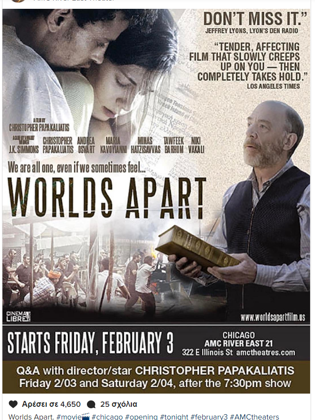 Ο Χριστόφορος ανέβασε στον προσωπικό του λογαριασμό στο instagram φωτογραφίες απο την πόλη του Σικάγου, όπου προβάλλεται τις ημέρες αυτές το φιλμ,  καθώς και απο τη συνέντευξη που έδωσε στο δίκτυο abc.