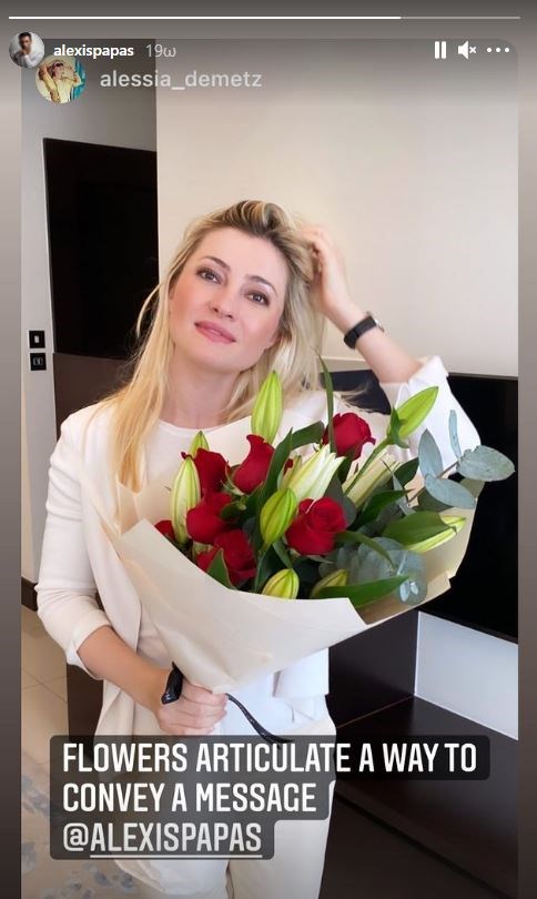 Ο Αλέξης Παππάς έστειλε στην Alessia μία ανθοδέσμη με κόκκινα τριαντάφυλλα και λευκούς κρίνους και εκείνη ενθουσιάστηκε. “Tα λουλούδια αποτελούν έναν τρόπο μετάδοσης ενός μηνύματος”, έγραψε η Alessia με τον ηθοποιό να κάνει repost τη φωτογραφία.