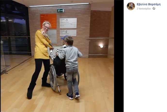 Η Εβελίνα Βαρσάμη, λίγες ώρες μετά την αλλαγή του χρόνου, δημοσίευσε στο facebook φωτογραφία από το νοσοκομείο με τον Κωνσταντίνο Αγγελίδη να βρίσκεται στο αναπηρικό αμαξίδιο, κάνοντας βόλτα με τον γιο του.