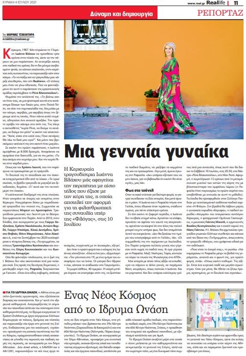 Μια ιστορία με αίσιο τέλος αξίζει να ειπωθεί, «για να πάρουν κι άλλοι γονείς, σε παρόμοια θέση, κουράγιο», όπως πιστεύει η Ιωάννα. Και να γιορταστεί. Και δεν υπάρχει καλύτερος τρόπος από μια συναυλία, όπως αυτή που θα δώσει το Σάββατο 10 Ιουλίου, στις 20:30, στο θέατρο «Ρένα Βλαχοπούλου», στο Μον Ρεπό. Αφορμή, η συμπλήρωση 15 χρόνων από τη μεταμόσχευση μυελού των οστών της κόρης της με βλαστοκύτταρα του ομφάλιου λώρου (η Ραφαέλα ήταν παγκοσμίως το πρώτο κορίτσι που υποβλήθηκε με επιτυχία σε αυτή τη μέθοδο). Τα έσοδα θα προσφερθούν στον Σύλλογο Παιδιών με νεοπλασματική ασθένεια-παιδικό καρκίνο «Η Φλόγα». Στη βραδιά θα λάβουν μέρος η γυναικεία χορωδία «Κορυφώ», η παιδική χορωδία «Αλεγκρία» του ηπειρώτικου συλλόγου Κέρκυρας, η φιλαρμονική Ομόνοια Γαστουρίου, ο μουσικός Γιάννης Μιχαήλ, ο ερμηνευτής Βασίλης Κυνηγόπουλος και η σχολή χορού της Νίκης Γιάννου. Η Ι. Βλάχου θα ερμηνεύσει τραγούδια γνωστών Ελλήνων συνθετών και κάποια από τον δίσκο της «Τα Κρυμμένα», όπως επίσης το τραγούδι «Φλόγα», που γράφτηκε ειδικά για την εκδήλωση.