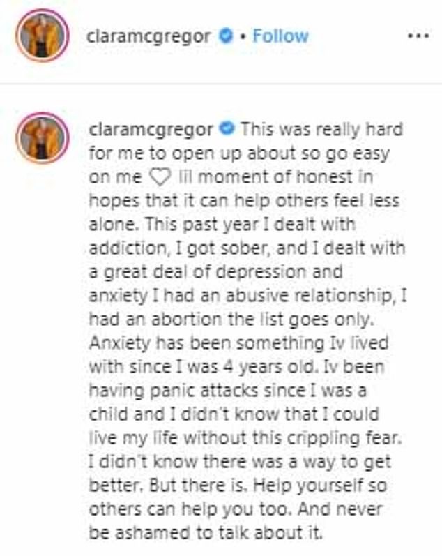 Η Κλάρα ΜακΓκρέγκορ, μοντέλο και μεγαλύτερη κόρη του πρωταγωνιστή του Trainspotting, γράφει πως προχώρησε σε αυτήν τη δημόσια εξομολόγηση προκειμένου να βοηθήσει όσους αισθάνονται το ίδιο με αυτήν.