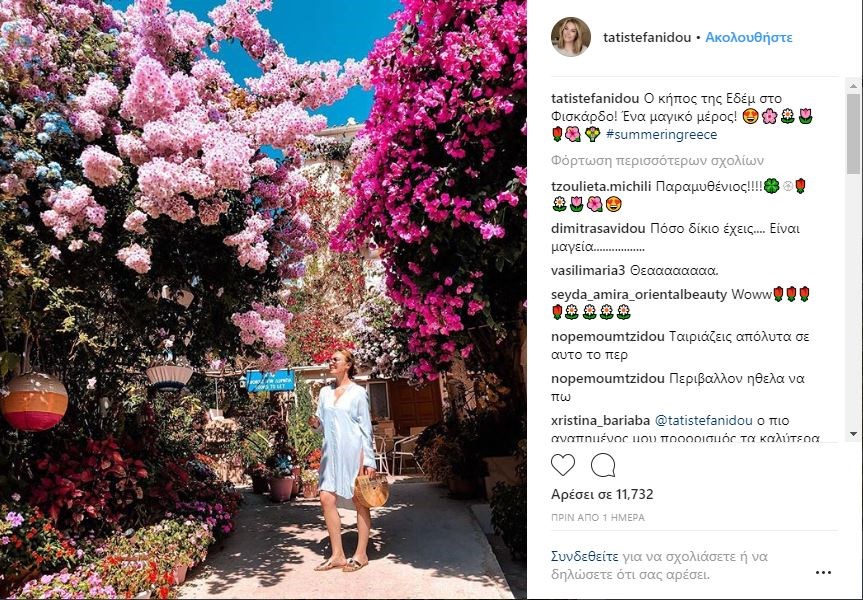 Την Κυριακή βρέθηκαν στον κήπο της Εδέμ -όπως τον χαρακτήρισε η παρουσιάστρια- του Φισκάρδου και ανέβασε την παρακάτω πανέμορφη φωτογραφία.