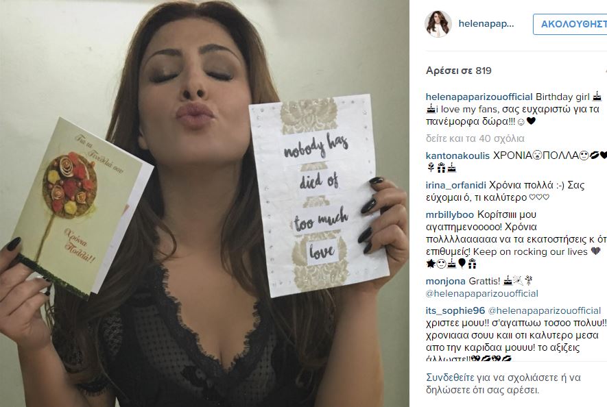 Η Έλενα Παπαρίζου σήμερα έχει τα γενέθλια της και δέχτηκε δώρα από τους θαυμαστές της.