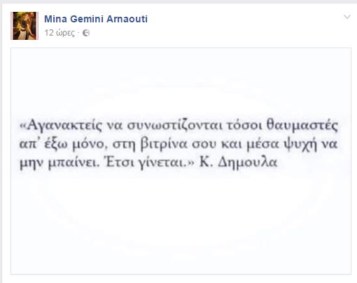 Λίγες ώρες αργότερα πόσταρε άλλη μία φωτογραφία στο προφίλ της στο facebook.