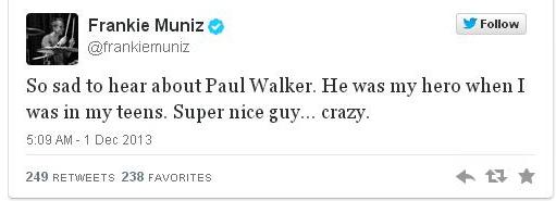 Επίσης ο Φρανκ Μιουνιτς: “Λυπήθηκα πολύ για τον Πολ Γουόκερ. Ήταν ο ήρωάς μου όταν ήμουν έφηβος. Σούπερ καλός τύπος… τρελός!”.