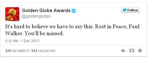 Ακόμη και ο διαχειριστής της σελίδας για τις Χρυσές Σφαίρες άφησε το μήνυμά του.
