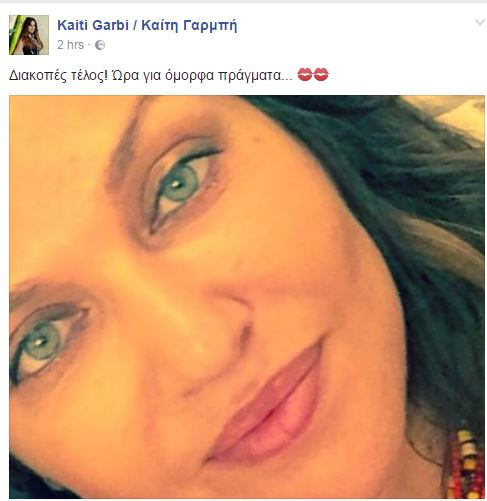 Tρέλανε τους διαδικτυακούς της φίλους στο Facebook, η Καίτη Γαρμπή με τη φωτογραφία που ανέβασε για να σηματοδοτήσει το τέλος των καλοκαιρινών της διακοπών.