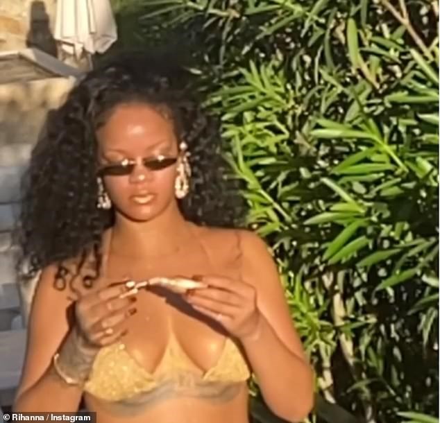 Πάντως, οι καμπύλες της έδειχναν να συγκρατούνται με δυσκολία μέσα στο μπικίνι της με τη Ριάνα να προκαλεί ταχυπαλμίες στους θαυμαστές της καθώς απλώνει την κρέμα με το γκλίτερ πάνω το μπούστο της.