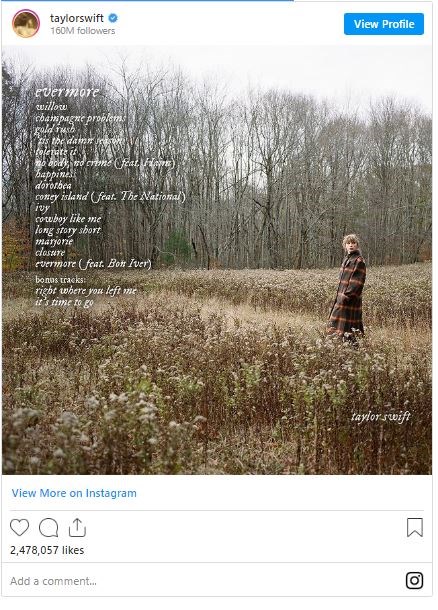 Από ό,τι φαίνεται το 2021 είναι η χρονιά της Σουίφτ, καθώς σημείωσε μια ακόμη τεράστια επιτυχία. Συγκεκριμένα, ο δίσκο της «Evermore» έσπασε ρεκόρ πωλήσεων. Μέσα σε μόλις 3 ημέρες, κατάφερε να σημειώσει τις περισσότερες πωλήσεις σε vinyl στις Η.Π.Α από το 1991. Εκείνη ήταν και η χρονιά που ξεκίνησαν επίσημα οι μετρήσεις.
