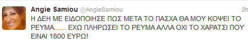 Η γνωστή τραγουδίστρια δήλωσε πως μετά το Πάσχα θα της κόψουν το ρεύμα… Γιατί;Την απάντηση έδωσε η ίδια μέσω Twitter!