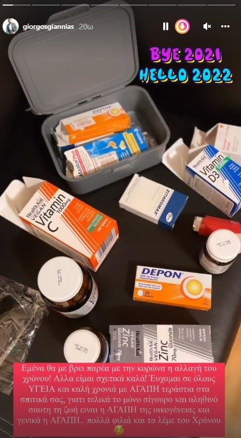 «Εμένα θα με βρει παρέα με την κορώνα η αλλαγή του χρόνου! Αλλά είμαι σχετικά καλά! Εύχομαι σε όλους υγεία και καλή χρονιά με αγάπη τεράστια στα σπιτικά σας, γιατί τελικά το μόνο σίγουρο και αληθινό σε αυτή τη ζωή είναι η αγάπη της οικογένειας και γενικά η αγάπη. Πολλά φιλιά και τα λέμε του χρόνου» έγραψε ο Γιώργος Γιαννιάς.