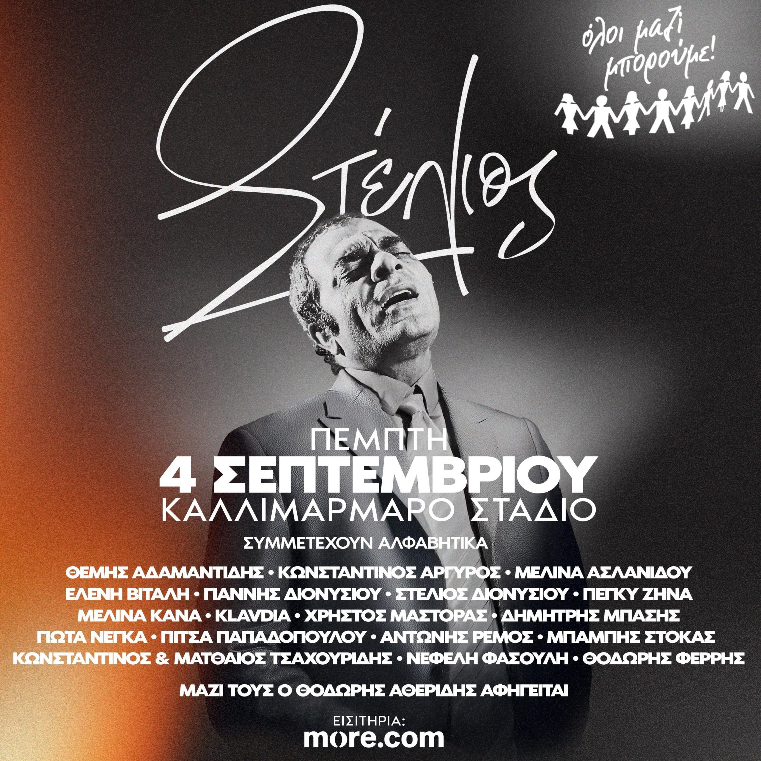 Με τη συμμετοχή σπουδαίων ερμηνευτών η Ελλάδα θα τραγουδήσει τον Στέλιο Καζαντζίδη, τον εμβληματικό καλλιτέχνη που ανέδειξε το λαϊκό τραγούδι και το «σημάδεψε» ανεξίτηλα με τον μοναδικό του τρόπο, στη φετινή συναυλία του Όλοι Μαζί Μπορούμε.