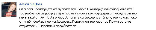 Ο Γιάννης Πλούταρχος έχει πολύ καλή επαφή με τους θαυμαστές του!Αν συμβαίνει κάτι, το μοιράζεται μαζί τους! Έτσι και τώρα…κάποιος έκλεψε ένα ντέμο του γνωστού τραγουδιστή και το κυκλοφόρησε στο διαδίκτυο! Ο Γιάννης Πλούταρχος αντέδρασε άμεσα. Μέσω του πολύ καλού του φίλου Αλέξη Σέρκου έστειλε ένα μήνυμα στο κοινό του.Γράφει ο Αλέξης Σέρκος στο Facebook: