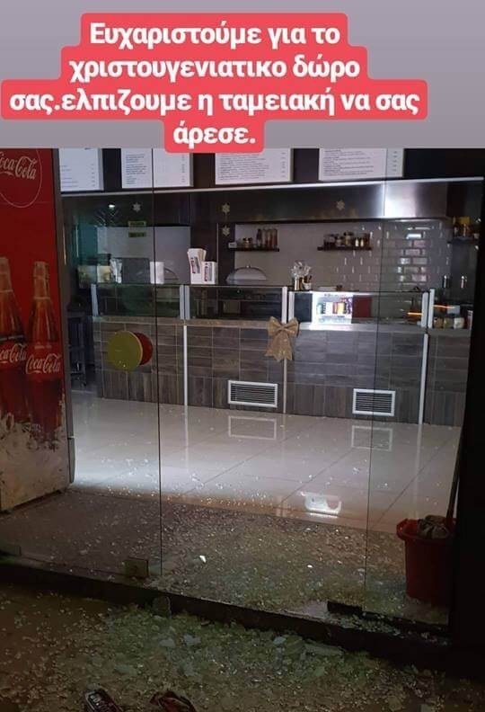 Ο πρώην παίκτης και νικητής του Power of Love ανέβασε στο Instagram μια φωτογραφία από το μαγαζί του στον Πειραιά όπου είναι συνέταιρος. Στη φωτογραφία φαίνεται η σπασμένη τζαμαρία με τον Πάνο Ζάρλα να μην χάνει το χιούμορ του και να σχολιάζει:“Ευχαριστούμε για το χριστουγεννιάτικο δώρο σας. Ελπίζουμε η ταμειακή να σας άρεσε”.