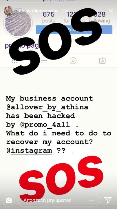 Θύμα χάκερ έπεσε γνωστή Ελληνίδα ηθοποιός στο Instagram.Ο λόγος για την πανέμορφη εγκυμονούσα Αθηνά Οικονομάκου, η οποία ενημέρωσε τους διαδικτυακούς της φίλους για την εμπειρία που είχε μέσω του προσωπικού της λογαριασμού.Όπως έγραψε χάκερ επιτέθηκε στον λογαριασμό της εταιρείας κοσμημάτων που έχει η ηθοποιός, μπήκε με τους κωδικούς και έσβησε τις περισσότερες αναρτήσεις με τα εντυπωσιακά κοσμήματα της ηθοποιού.