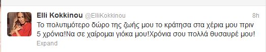 Η ίδια, μέσα από τον προσωπικό της λογαριασμό στο twitter, έγραψε ένα συγκινητικό μήνυμα για τα γενέθλιά του παιδιού της: