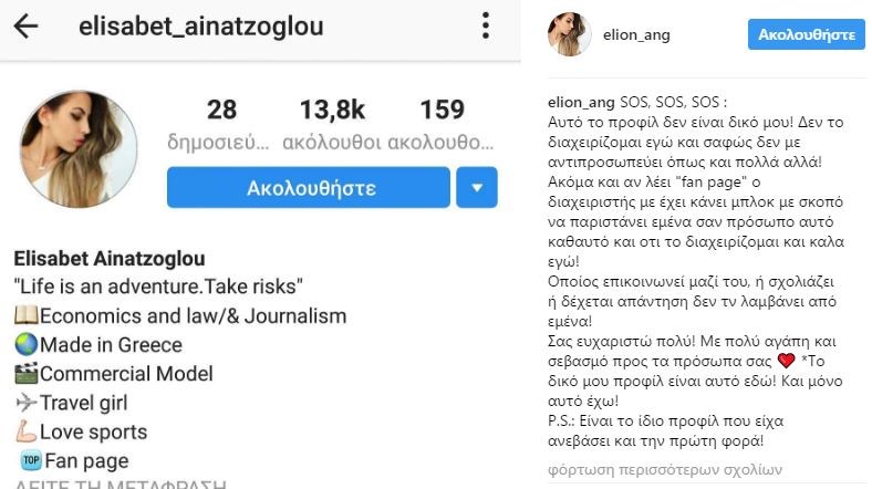 “Αυτό το προφίλ δεν είναι δικό μου! Δεν το διαχειρίζομαι εγώ και σαφώς δεν με αντιπροσωπεύει όπως και πολλά άλλα! Ακόμα και αν λέει “fan page” ο διαχειριστής με έχει κάνει μπλοκ με σκοπό να παριστάνει εμένα σαν πρόσωπο αυτό καθαυτό και ότι το διαχειρίζομαι και καλά εγώ! Οποίος επικοινωνεί μαζί του, ή σχολιάζει ή δέχεται απάντηση δεν την λαμβάνει από εμένα!