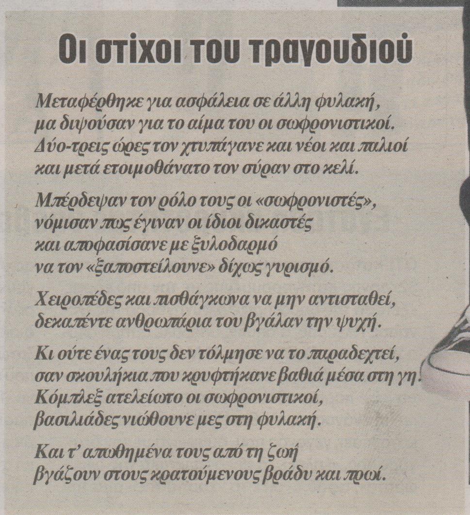 “Το τραγούδι δεν το έγραψα εγώ, αλλά ο φίλος μου Δημήτρης Πανούσης, ο οποίος είναι πολύ καλός μουσικός. Δεν υποστηρίζω κανέναν φυσικά. Εμείς, με τον Δημήτρη, είμαστε υπέρ της δικαιοσύνης. Εγώ συμφωνώ να πηγαίνουν μέσα ισόβια όλοι όσοι κάνουν εγκλήματα. Είμαι ο πιο Έλληνας που υπάρχει, ο δεύτερος βρίσκεται πολλά χρόνια πίσω μου. Κανένας δεν θα μου κάνει μαθήματα ελληνικότητας” δηλώνει ο Αγάθωνας και συμπληρώνει: “Δεν τραγουδάω για έναν δολοφόνο, αυτόν να τον φάει το μαύρο σκοτάδι. Δεν τον γνώριζα καν. Το τραγούδι δεν αναφέρει πουθενά το όνομά του, ούτε μιλάει για κάποιον Αλβανό”, δηλώνει στην Espresso.