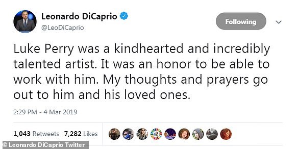 Το Λεονάρντο Ντι Κάπριο αποχαιρέτησε μέσω twitter τον Λουκ Πέρι: “Ο Λουκ ήταν ένας καλόκαρδος και εκπληκτικά ταλαντούχος καλλιτέχνης. Ήταν τιμή μου που είχα τη δυνατότητα να δουλέψω μαζί του. Οι σκέψεις και προσευχές μου για αυτόν αλλά και τους αγαπημένους του”.