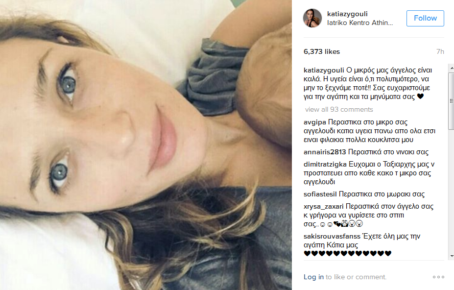 Το δικό της «ευχαριστώ» για το νεογέννητο γιό της, που τα τελευταία 24ωρα νοσηλευόταν στην παιδιατρική κλινική του ιατρικού Κέντρου Αθηνών είπε μέσω Instagram η Κάτια Ζυγούλη.