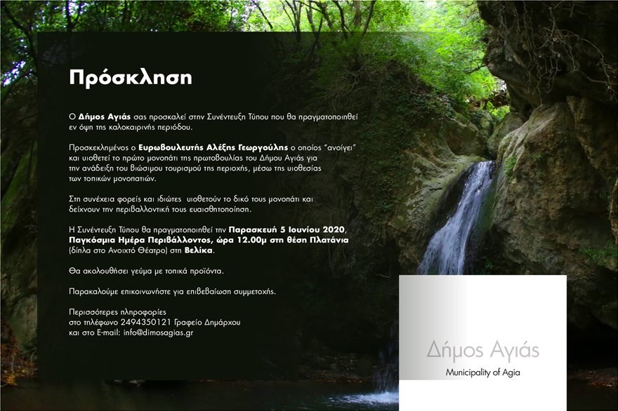 Δείτε το βίντεο και την ανακοίνωση – πρόσκληση του δήμου Αγιάς παρακάτω: