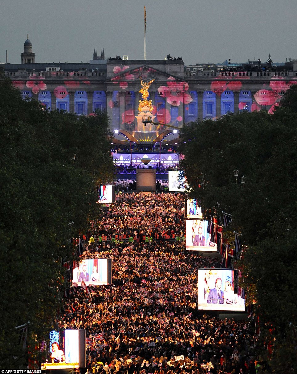 Στη συνέχεια πρόσθεσε: “Αν έπρεπε να πω κάτι, είναι ότι Δόξα τω Θεώ, όλα κύλησαν μια χαρά”. ( Η βασίλισσα, όπως και όλοι φοβούνταν τον καιρό).Τα δρώμενα πάνω στη σκηνή, παρακολούθησαν όσοι κατέβηκαν στους δρόμους, μέσα από τεράστιες οθόνες, που είχαν τοποθετηθεί και στις δύο πλευρές.