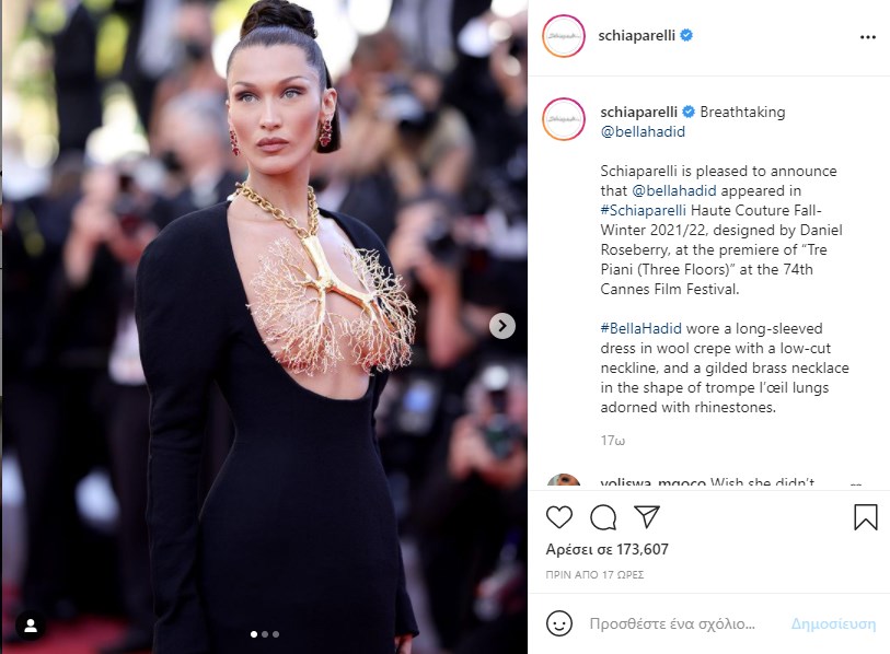 Η Μπέλα Χαντίντ προκάλεσε φρενίτιδα στο Φεστιβάλ των Καννών με την εντυπωσιακή της εμφάνιση την Κυριακή. Το σούπερ μόντελ φόρεσε ένα κόσμημα που οδήγησε σε… “βροχή” σχολίων.