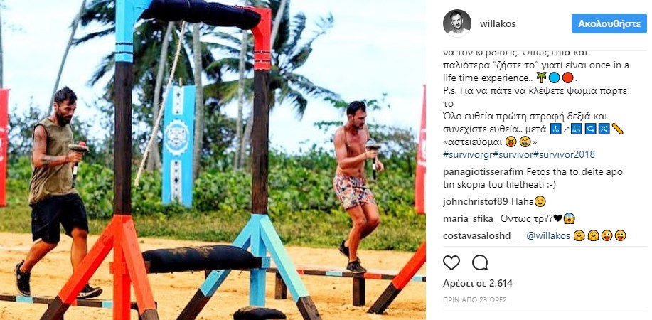 «Καλό ταξίδι» στους νέους παίκτες του Survivor 2 ευχήθηκε πρώην μαχητής του παιχνιδιού επιβίωσης, δίνοντας μάλιστα και συμβουλές για το πώς μπορούν να… κλέψουν ψωμί.Ο λόγος για τον Γουίλι, ο οποίος ανέβασε μια φωτογραφία από τον πρώτο κύκλο του Survivor στον προσωπικό του λογαριασμό στο Instagram και έγραψε: «Καλό ταξίδι στα παιδιά που σε λίγες μέρες φεύγουν για Άγιο Δομήνικο. Το μάθημα που πήρα αυτές τις λίγες μέρες που έκατσα είναι ότι τα αποθέματα ψυχής είναι ποιο σημαντικά από τα σωματικά. Να είναι ταπεινοί και συγχρόνως ανταγωνιστικοί. Ελπίζω να έμαθαν από τα δικά μας λάθη και να μην τα επαναλάβουν γιατί ο κόσμος είναι δύσκολο κοινό και θέλει προσπάθεια για να τον κερδίσεις. Όπως είπα και παλιότερα “ζήστε το” γιατί είναι once in a life time experience.. ???.