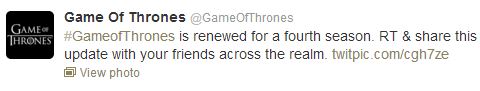 Μετά από λίγες ώρες το κανάλι HBO ανακοίνωσε επίσημα την 4η σεζόν μέσω twitter.