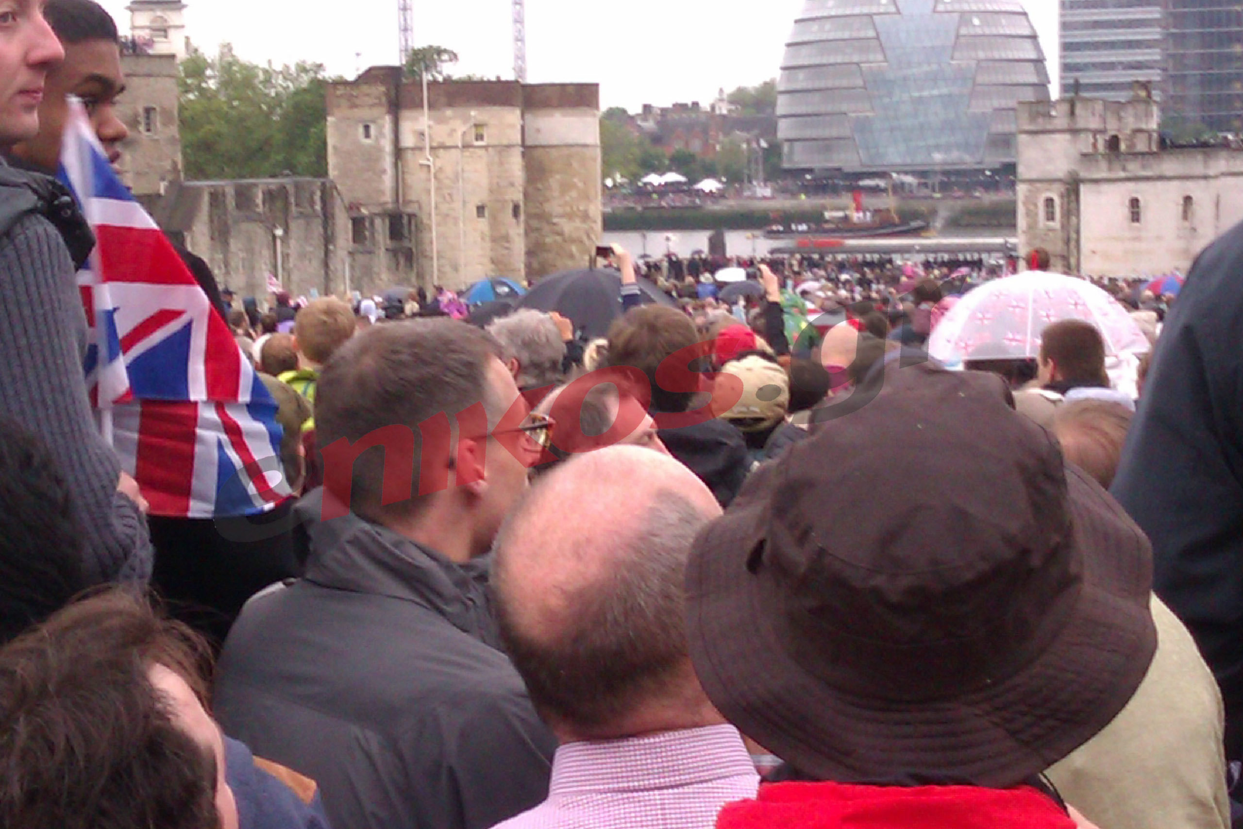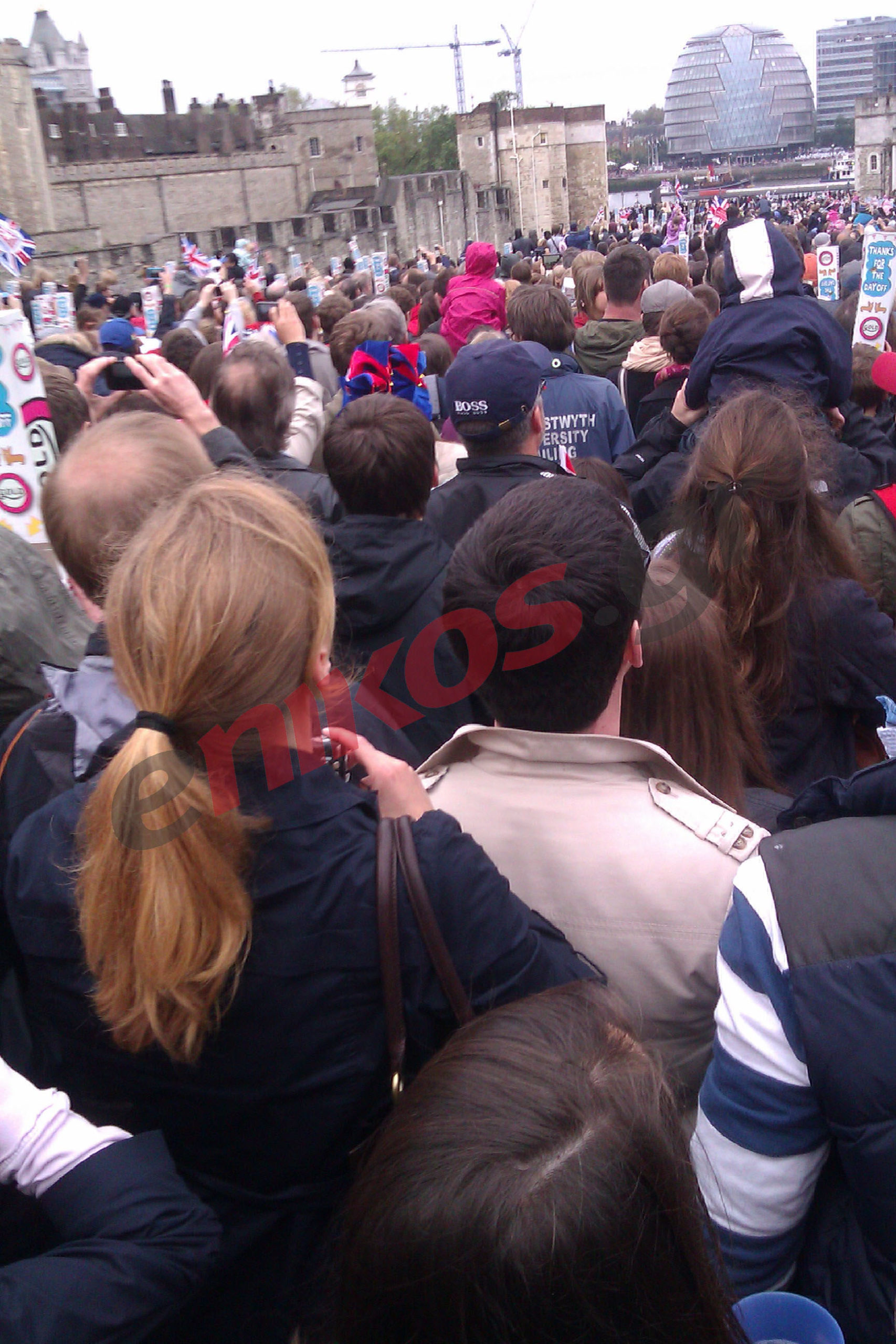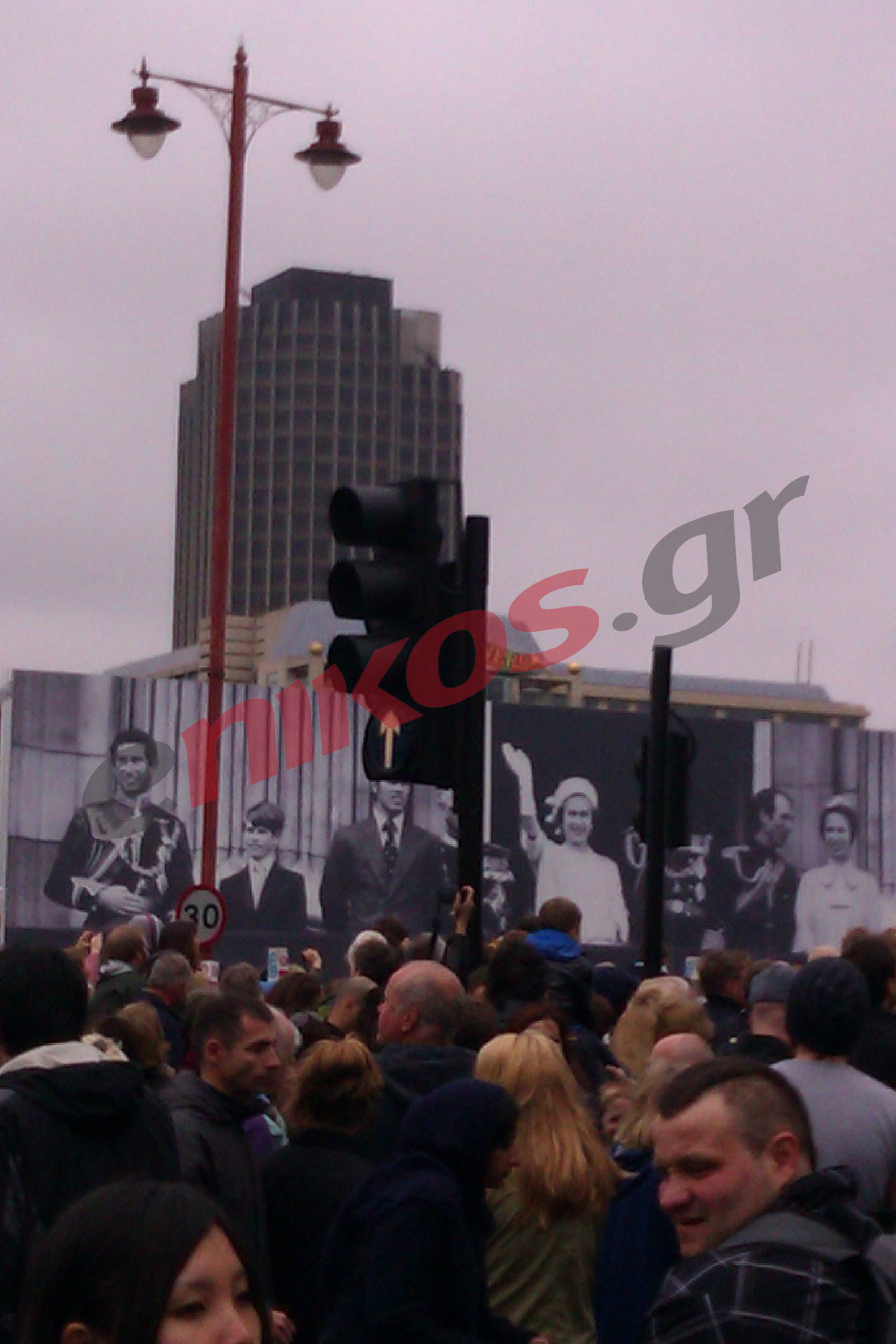 Οι φωτογραφικές μηχανές και τα κινητά πήραν φωτιά, έτσι ώστε οι κοινοί θνητοί να “αιχμαλωτίσουν” έστω και σε ένα στιγμιότυπο τους γαλαζοαίματους. Άλλωστε, είναι γνωστή η λατρεία των Βρετανών για την βασιλική οικογένεια και ιδιαίτερα για την Elizabeth. Oι περισσότεροι από αυτούς κρατούσαν σημαιάκια και είχαν βάψει τα πρόσωπά τους με τα χρώματα της σημαίας τους!