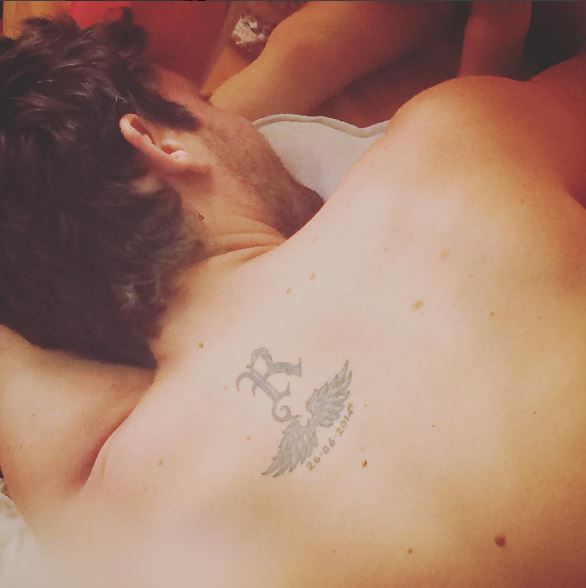 Ο γνωστός ηθοποιός έχει στην πλάτη του ένα τατουάζ με το γράμμα R, δύο φτερά και την ημερομηνία του γάμου τους.