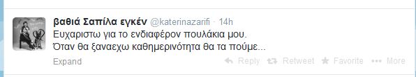 Η Κατερίνα Ζαρίφη για πρώτη φορά μετά από τόσες μέρες απουσίας από την εκπομπή της Ελένης Μενεγάκη, έγραψε στο twitter ένα τρυφερό μήνυμα προς τους ανθρώπους που έχουν ενδιαφερθεί και ανησυχήσει για την απουσία της.
