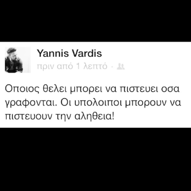 “Όποιος θέλει μπορεί να πιστεύει όσα γράφονται. Οι υπόλοιποι μπορούν να πιστεύουν την αλήθεια”.
