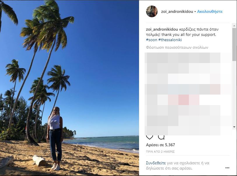 Την πρώτη της ανάρτηση μετά την οικειοθελή της αποχώρηση από το Survivor έκανε στο Instagram, η Ζωή Ανδρονικίδου.