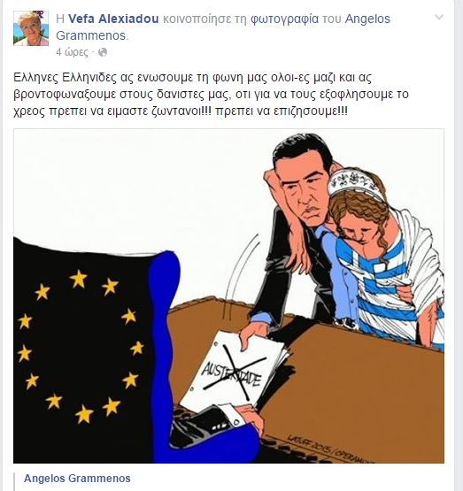 Η Βέφα Αλεξιάδου κοινοποίησε στο facebook ένα μήνυμα σχετικά με το χρέος της Ελλάδας.