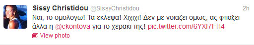 Η Σίσσυ Χρηστίδου με πολύ χιούμορ εξομολογήθηκε στους followers της στο twitter ότι “έκλεψε” βραχιόλια απο την φίλη της Χριστίνα Κοντοβά.