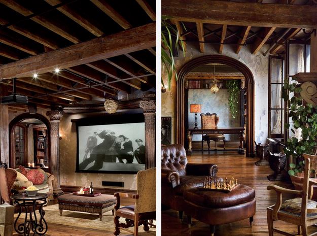 Ξύλο και δέρμα έχουν τον πρώτο λόγο, ενώ από τον χώρο δεν λείπουν ο έντονος φωτισμός, οι πολυέλαιοι και τα φυτά, όπως βλέπουμε στις εικόνες που δημοσίευσαν τα περιοδικά «Forbes» και «Architectural Digest».